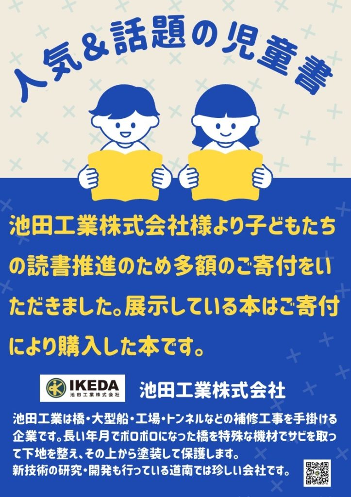 11月1日から北斗市立図書館では、弊社の寄付金で購入した児童書のコーナーが出来ています。