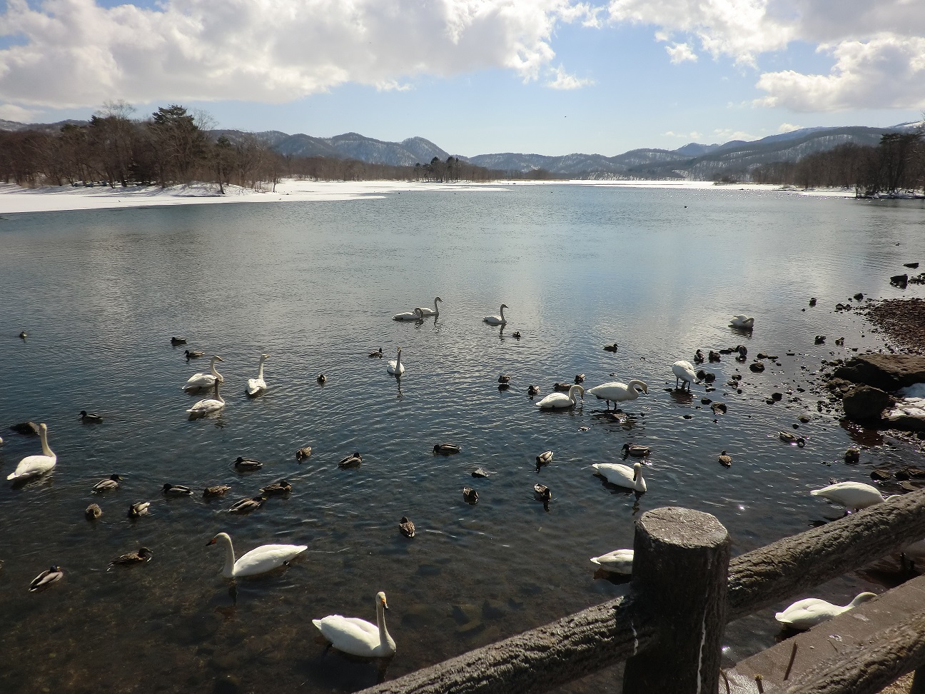 ハクチョウやカモがけっこう近くまできていて、