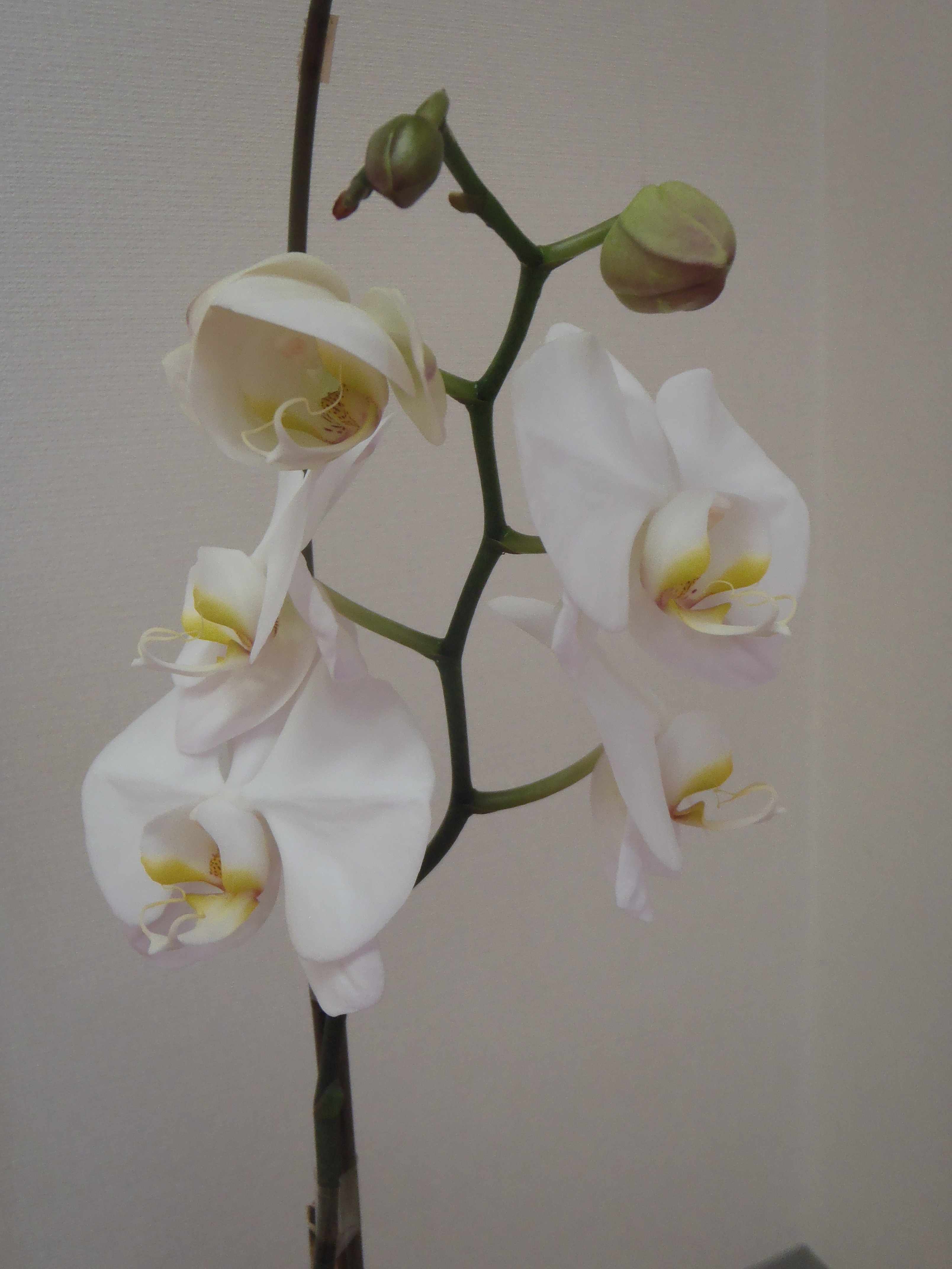 暑いです… 掲載日:2014年08月06日 8月に入ってから、厳しい暑さが続いていますね。 雨が続いているので湿度が高く、家の中はかなりムシムシしていています。 我が家では扇風機2台が常時ふる活動していますが、それでも暑い…。 早くエアコンが効いている涼しい職場に行きたいと思う今日この頃です。 毎日、太陽の下で現場で作業している職人さん達には頭が上がりません (>_<) 先日、紹介した胡蝶蘭の花が次々と咲いていますよ~